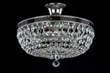 Этот потолочный светильник-корзина классического дизайна крепится к потолку на короткой трубке с колпаком. Цепочки хрустальных подвесок подвешены на круглой раме с изящным рельефным декором, образуя форму самого светильника – простую, но очень эффектную. Благодаря своим размерам этот светильник идеально подходит для небольших помещений с низкими потолками.