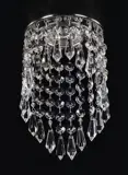 Металлический корпус диаметром 12 см дополнен гранеными хрустальными подвесками, собранными в продуманную композицию. Каждый луч света преломляется в них, создавая сдержанный, но роскошный эффект. В результате получается не резкий луч света, а приятная игра отражений, которая добавит глубины и элегантности пространству.