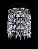 Встраиваемое металлическое основание диаметром 12 см доступно в золотом или серебряном цвете. По периметру свисают цепочки из точно ограненных хрустальных подвесок. Как только через них проходит дневной или искусственный свет, пространство наполняется тонкими отражениями и вспышками цвета, которые может создать только настоящий богемский хрусталь.